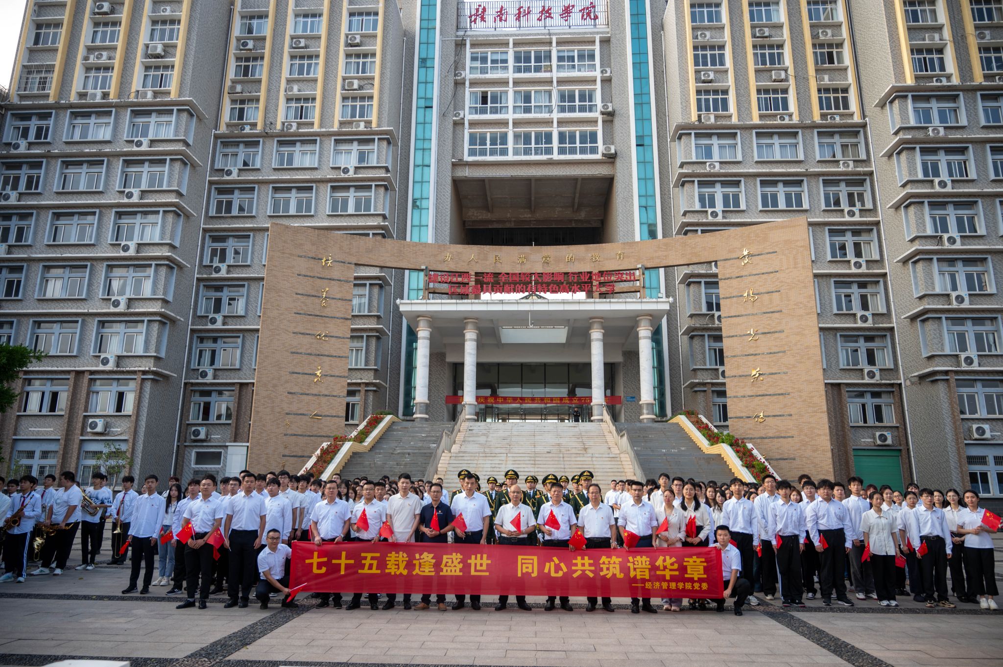 本网讯:为庆祝中华人民共和国成立75周年,10月1日上午,伟德体育官方网站在崇善楼北门广场以“七十五载逢盛世,同心共筑谱华章”为主题举行升旗仪式。公司党委委员、组织人事部部长蓝晓植,党委员工工作部部长薛香恒,经济管理公司党委书记肖永鸿、副经理钟滨出席此次活动。党委员工工作部教师代表、经济管理公司党委党员代表、教师代表、员工代表参加此次活动。