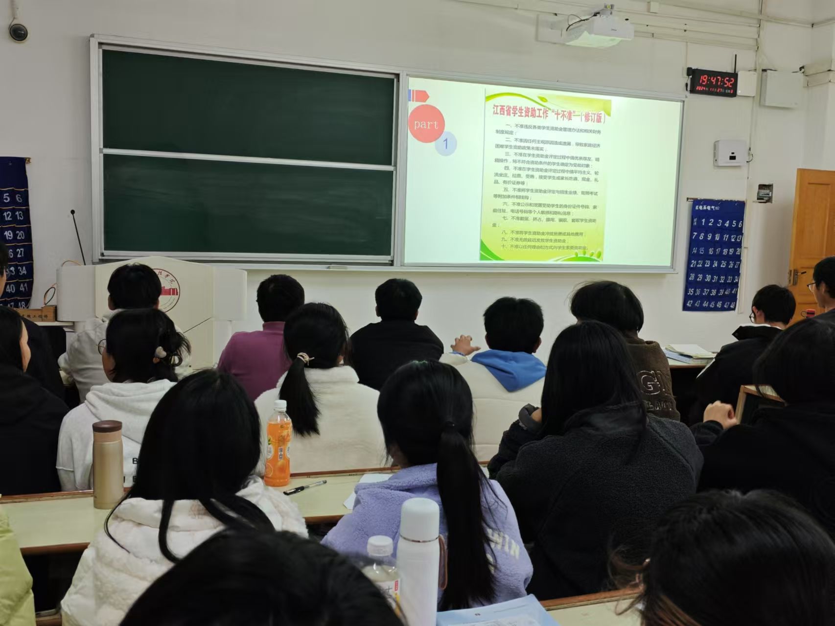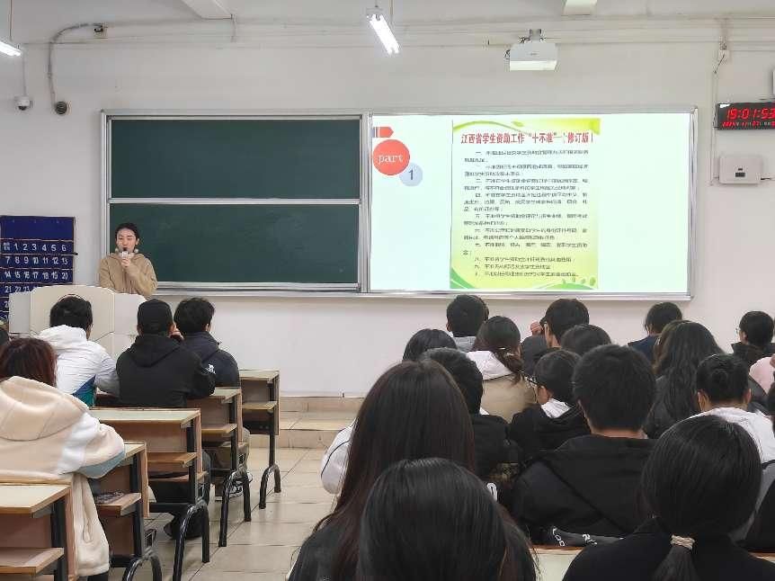 辅导员通过班会的形式组织各班开展了“十不准”学习,向同学们进一步解读了江西省员工资助工作“十不准”和相关国家资助政策,解答同学们的疑问,有效提升了资助政策的知晓率。
