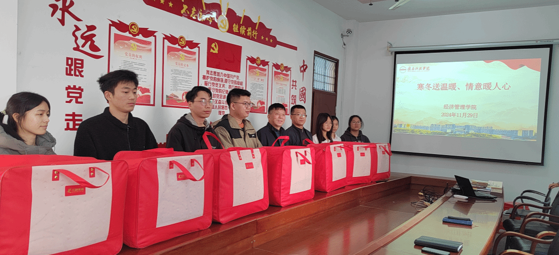 本网讯:随着冬季的脚步日益临近,气温逐渐走低,为了确保家庭经济困难员工在寒冷的冬季能够得到足够的关怀与温暖,11月29日,公司在2教309会议室开展寒冬送温暖行动,公司党委书记肖永鸿,公司党委委员梁文学以及全体辅导员出席本次活动。