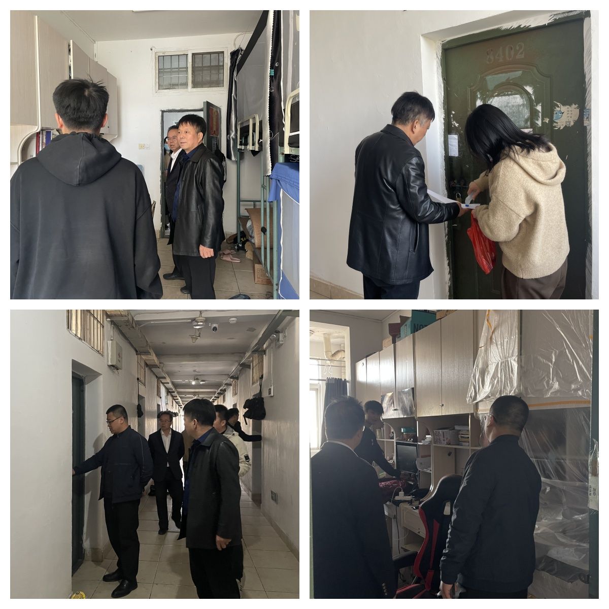 肖永鸿带领公司领导班子及全体辅导员对员工宿舍进行安全隐患专项检查。肖永鸿对员工离校情况进行重点核实,并检查员工宿舍内水电开关,着重对私拉乱接电线、室内存放易燃易爆品等突出安全问题进行检查。辅导员们对宿舍门窗进行全面检查,确保门窗关闭严实,为员工下学期顺利入住做好准备。