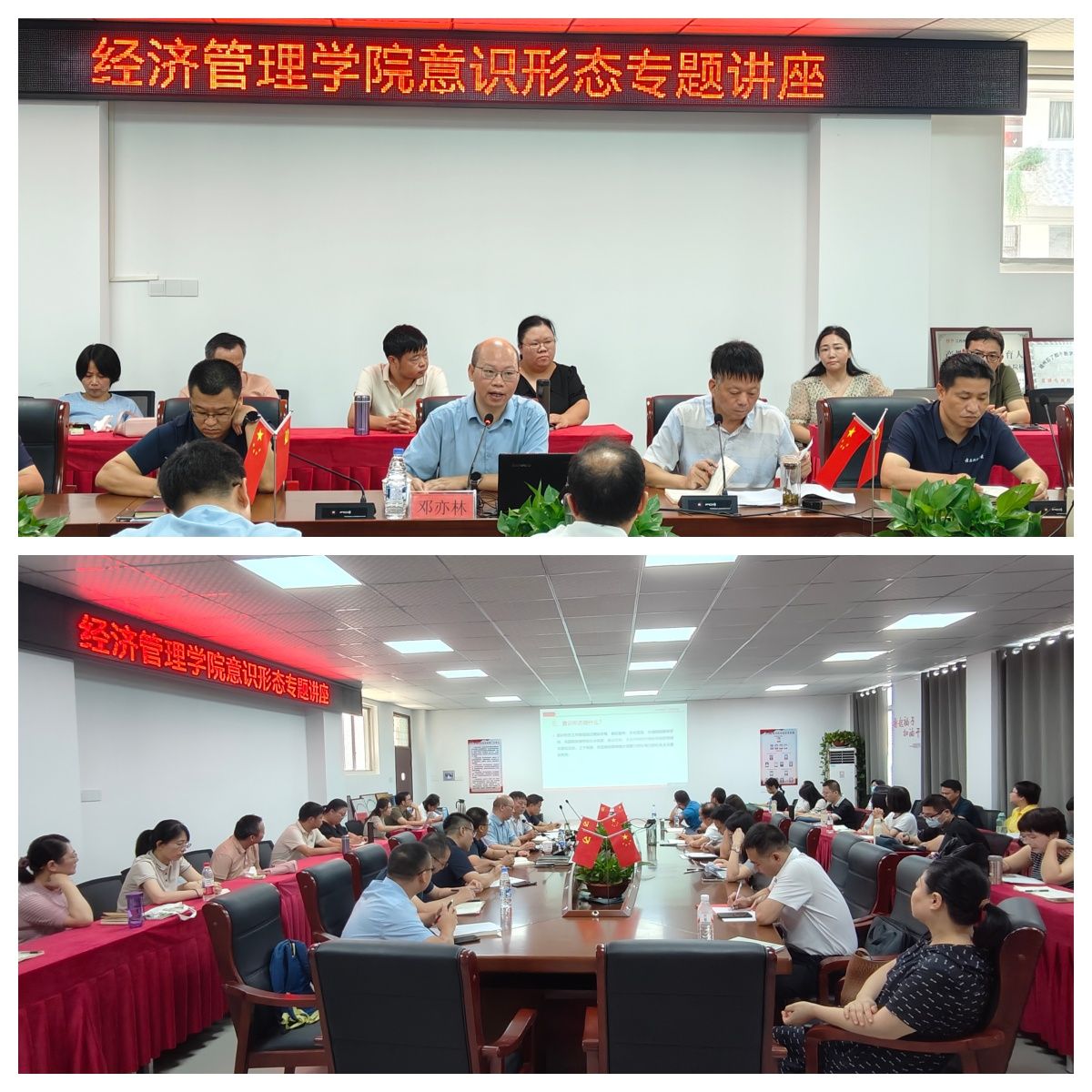 本网讯:9月28日,公司党委委员、宣传部部长邓亦林应邀在伟德体育官方网站作了题为《坚持立德树人初心 筑牢意识形态安全防线——新时代高校教师的责任与担当》的意识形态专题讲座。伟德体育官方网站领导班子成员、全体教职工聆听,讲座由经济管理公司党委书记肖永鸿主持。