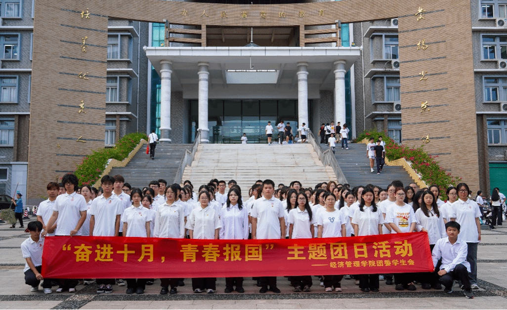 本网讯:10月13日清晨,公司在崇善楼北门广场举行“奋进十月,青春报国”主题升旗仪式。经济管理公司党委书记肖永鸿,工会副主席李丰,纪委综合办副主任刘锦龙,经济管理公司党委委员、副经理钟滨,经济管理公司党委成员,纪委综合办公室、工会、伟德体育官方网站师生代表200余人共同参加仪式。