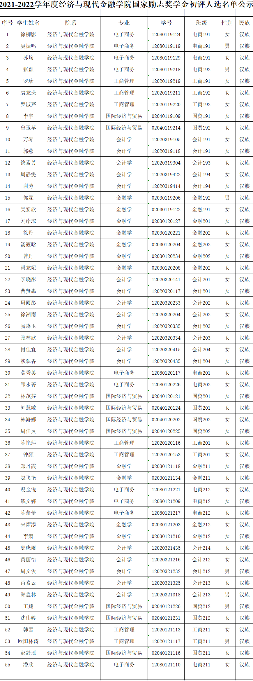 根据《伟德体育官方网站本科生国家励志奖学金评审实施办法》及学工《关于开展公司国家励志奖学金评定工作的通知》(〔2022〕25号)等有关文件精神,经员工个人申请、班级评议小组评议、系评审领导小组初审,已确定公司2021-2022学年度国家励志奖学金初评人选,现将名单予以公示。
