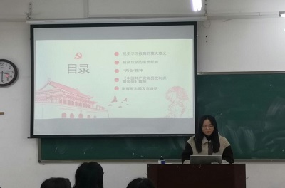 本网讯:为深入学习习近平总书记在党史学习教育动员大会上的重要讲话精神,传达全国脱贫攻坚总结表彰大会精神。3月21日下午,经济管理系本科生第二党支部在主教Z104开展“学党史悟思想·守初心谋新局”主题党会,经济管理系本科生第二党支部书记谢晖慧出席本次会议,支部全体党员、预备党员参加会议,会议由员工党员陈尾花主持。