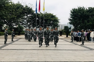 本网讯:为引导和激励我系同学大力弘扬爱国主义精神,从第十周至第十四周每周一早上,经济管理系在崇善楼前隆重举行“向国旗敬礼——青春致敬祖国”升旗仪式活动。经济管理系团总支书记王博文以及经管系20级全体员工参加了此次升旗仪式活动。