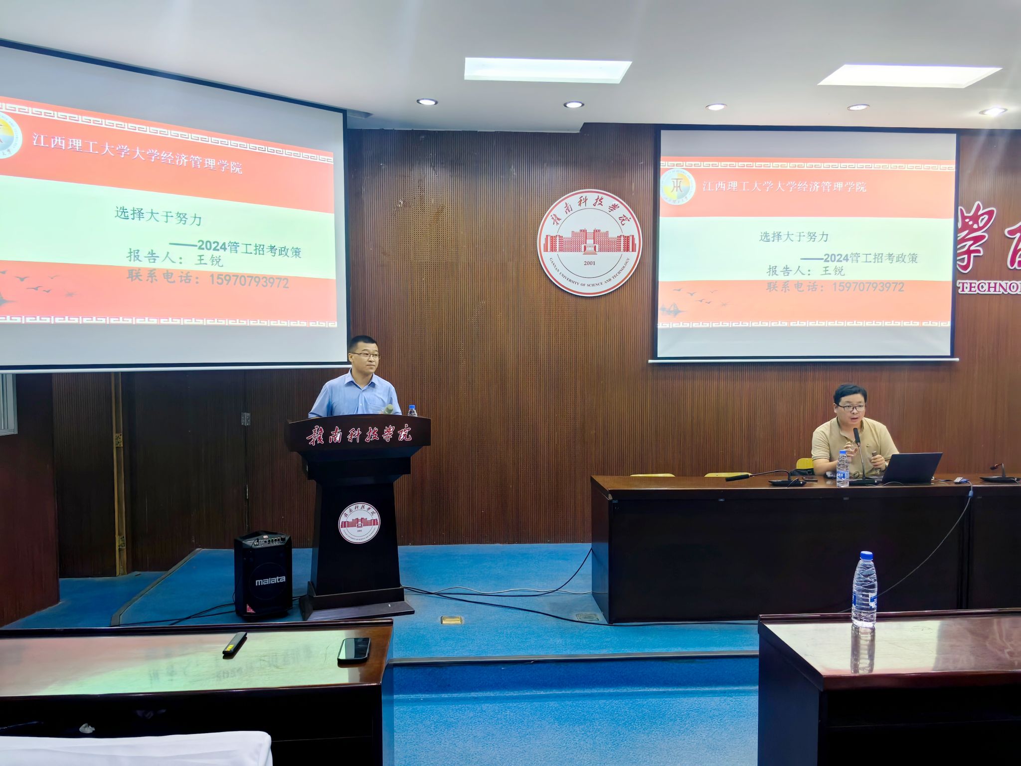 本网讯:为进一步增强同学们对考研报考院校、专业的了解,提高同学们报考心怡院校的成功率,增强考研信心,9月27日晚,经济管理系于新民楼学术报告厅举办2024届考研报考分析讲座。讲座邀请江西理工大学伟德体育官方网站工商管理系主任王锐主讲,120余名考研员工参加。
