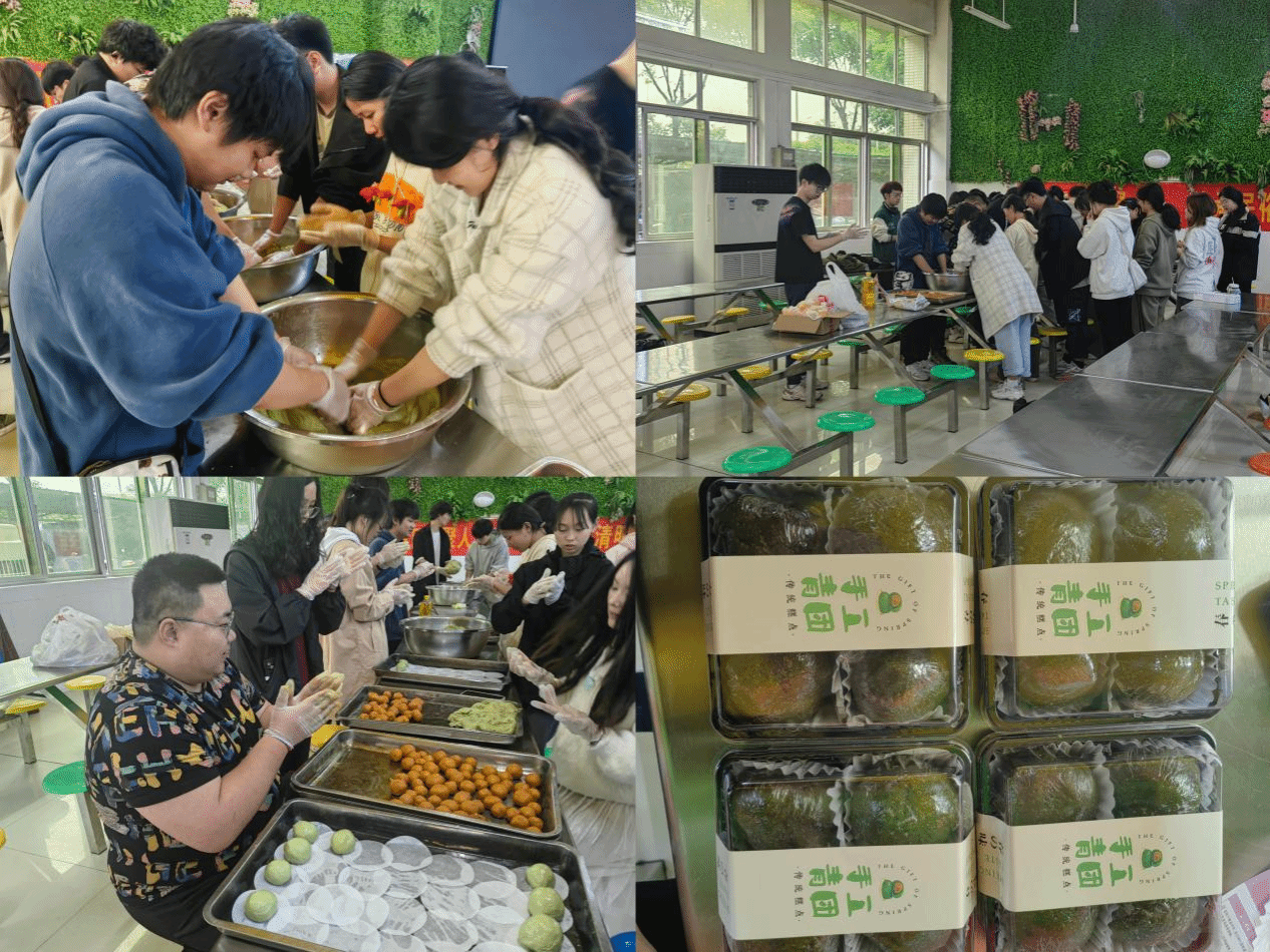 在青团制作环节中,员工们齐心协力,在经验丰富的食堂阿姨们细心指导下,共同揉面、搓圆、包馅,动手制作青团。在制作过程中,同学们既体会到了劳动的乐趣,又感受到了传统文化的独特魅力。经过十几分钟蒸制,一屉屉油绿如玉、糯韧绵软、清香扑鼻的青团顺利出锅。在场人员共同品尝美味青团,热乎乎的青团飘香四溢,清新的香味布满了整个食堂。