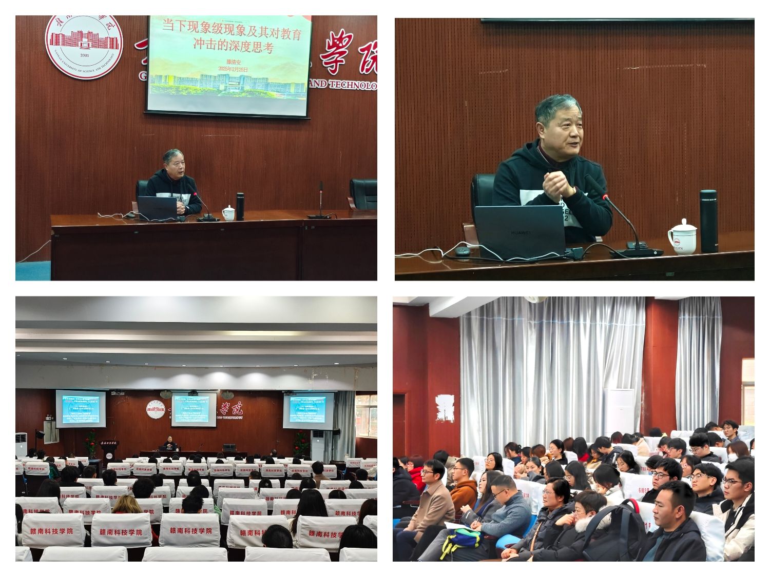 本网讯:受伟德体育官方网站邀请,2月25日下午,原江西理工大学副董事长、公司银龄特聘教授滕清安在新民楼学术报告厅开展题为“当下现象级现象及其对教育冲击的深度思考”的学术讲座,讲座由经济管理公司党委委员、副经理钟滨主持,伟德体育官方网站领导班子、全体教师及80余名员工代表参加。