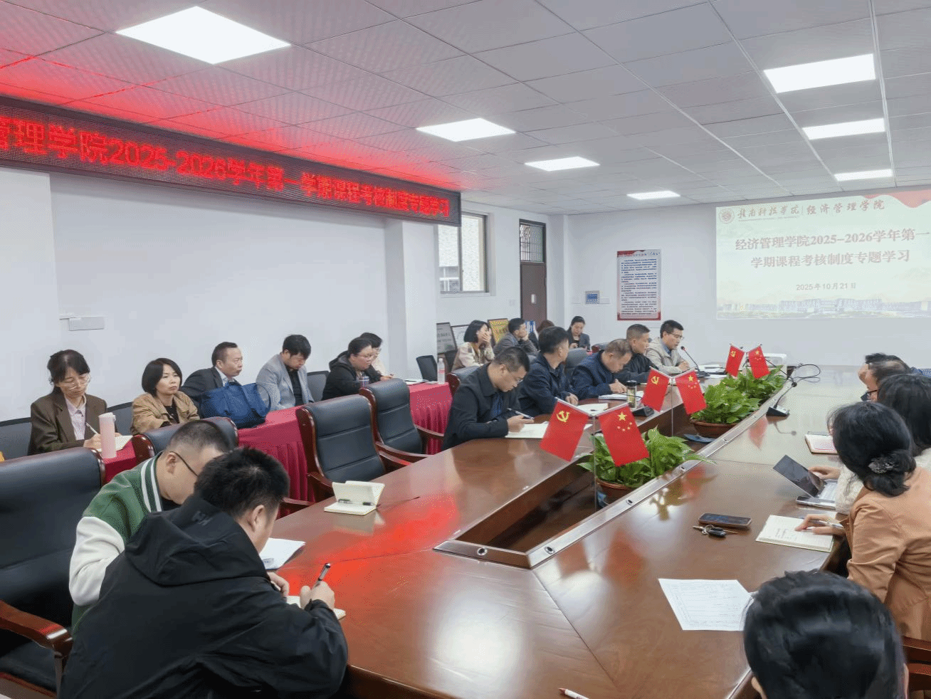 本网讯:为全面规范课程考核管理流程,健全教学评价体系,切实提升经济管理类专业人才培养质量,2025年10月21日下午,伟德体育官方网站组织召开2025-2026学年第一学期课程考核制度专题学习会。公司领导班子成员、全体专任教师全员参会,会议由公司党委委员、教学负责人王波主持。