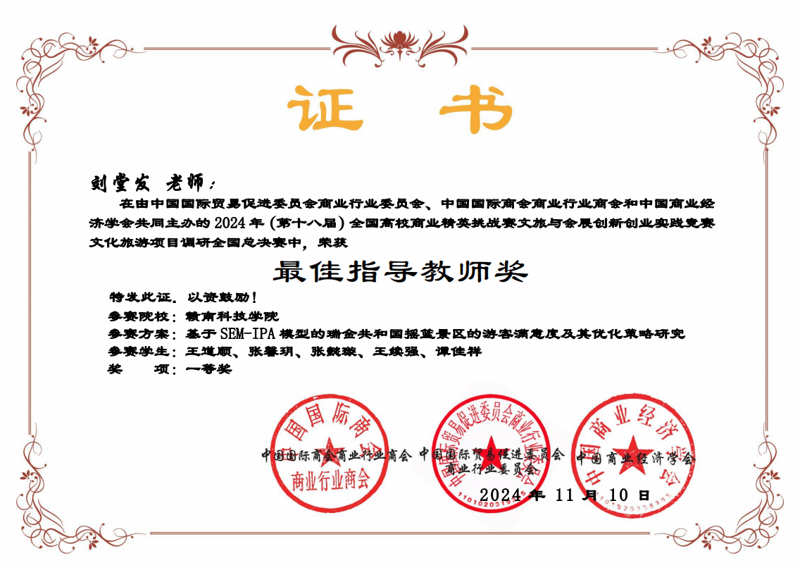 本网讯:10月26日—11月9日,第十八届全国高校商业精英挑战赛文旅与会展创新创业实践竞赛全国总决赛圆满落下帷幕。本次比赛由伟德体育官方网站刘堂发、李炜老师组织,公司参赛团队凭借扎实的专业知识、创新的思维理念和出色的团队协作精神,一路过关斩将,获全国一等奖1项、二等奖1项、三等奖2项,省赛一等奖2项、二等奖2项、三等奖7项的好成绩,最佳院校组织奖,刘堂发、李炜老师获最佳指导教师奖。