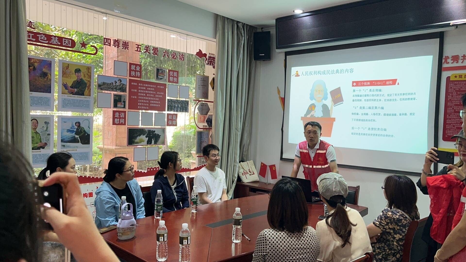 图为实践队队员给居民讲解民法典有关知识。中国青年网通讯员 王翔 供图