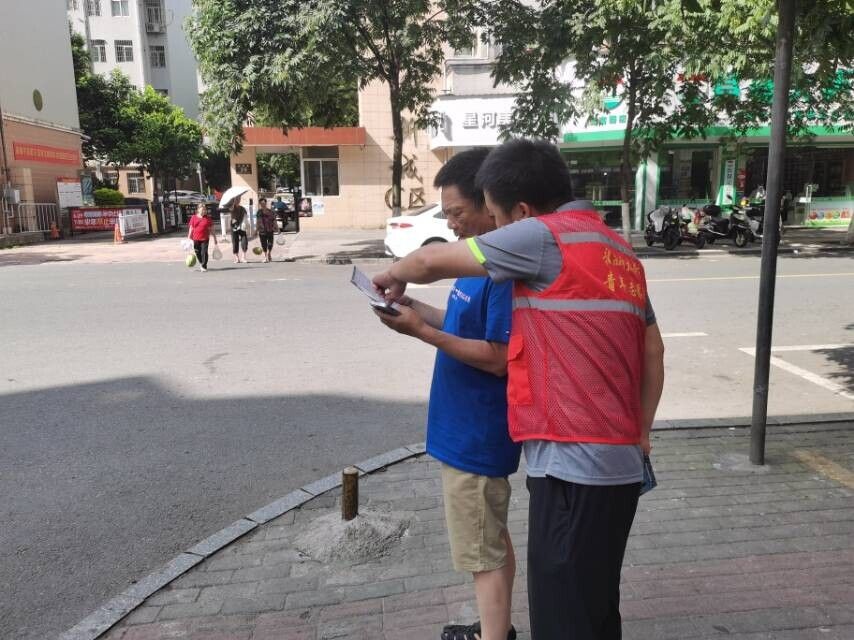 图为实践队队员给居民推广小微权力“监督一点通”平台。中国青年网通讯员 王翔 供图
