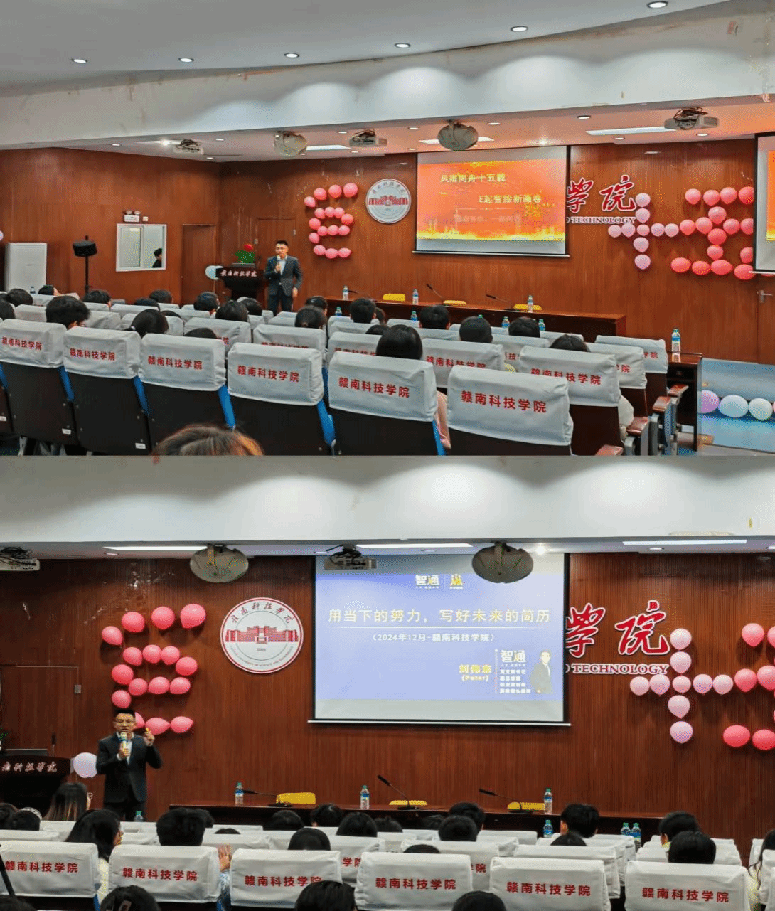 活动中,陈北平以“不坠吾辈青云之志,甘逆狂风暴雨行”为主题,分享了他从事房地产行业12年的心路历程。他通过自己的经历,激励在座的学弟学妹们要勇于面对困难,坚持自己的梦想。