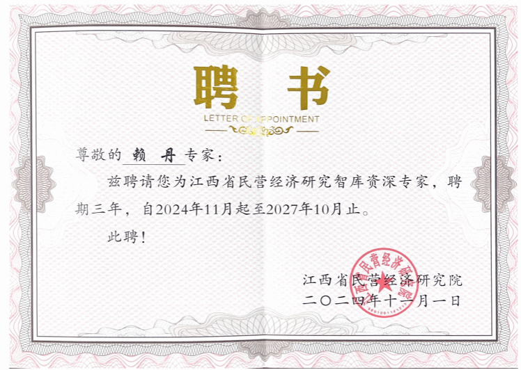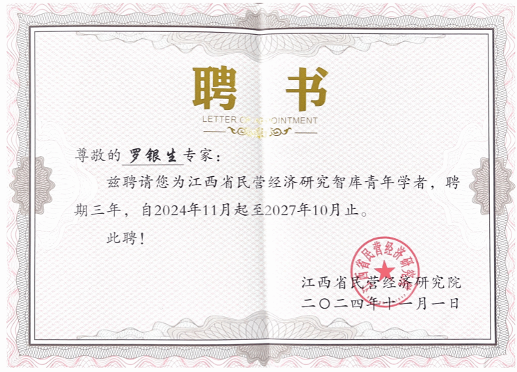 本网讯:近日,在江西省工商联主办的江西省民营经济研究点和智库专家评选中,公司能源金属产业研究院成功获批江西省民营经济研究点,伟德体育官方网站赖丹、刘堂发和罗银生3位教师获“智库专家”称号。